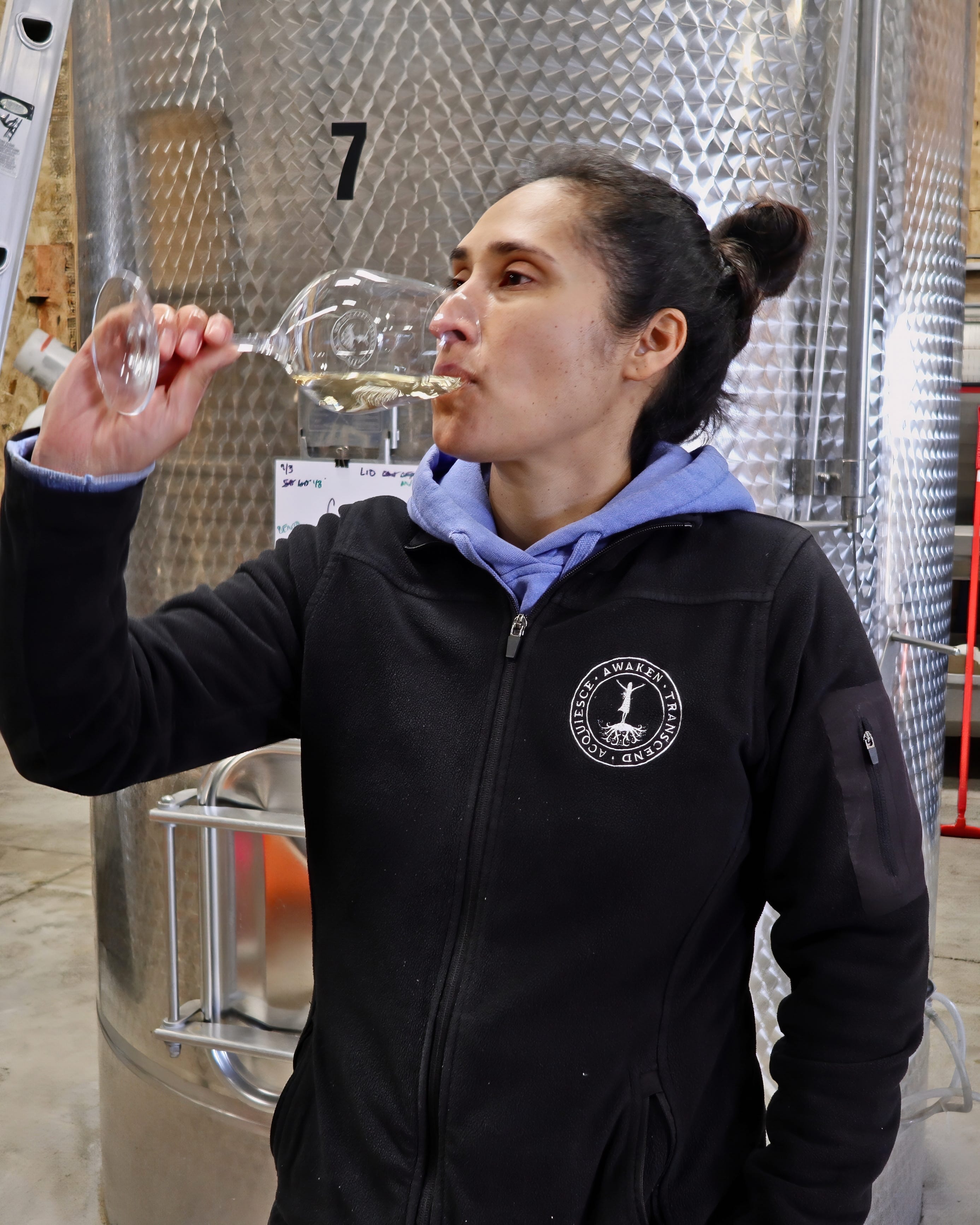 Acquiesce’s 100% commitment to crisply balanced, unoaked wines is not just an aesthetic choice. It also has a lot to do with founder Sue Tipton’s conviction that Acquiesce grown wines can only be appreciated one way: In the context of food.