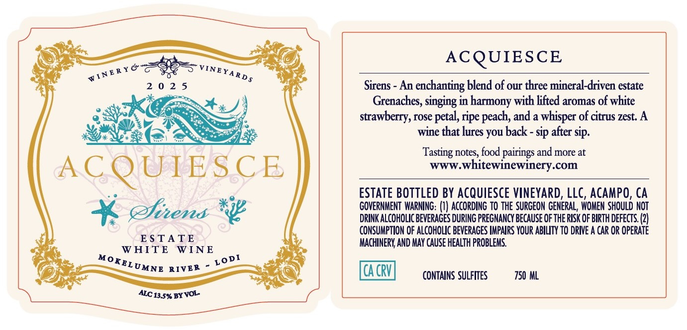 The beauty of Acquiesce Winery & Vineyard since its founding in 2012 on the east side of Mokelumne River-Lodi appellation is that it grows 100% of its own grapes—all of them “Rhône” varieties—and specializes in white wines (no reds, except for occasional “outliers”).